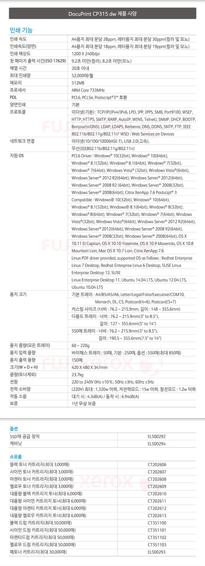 후지제록스 CP315dw 컬러 레이저젯 프린터